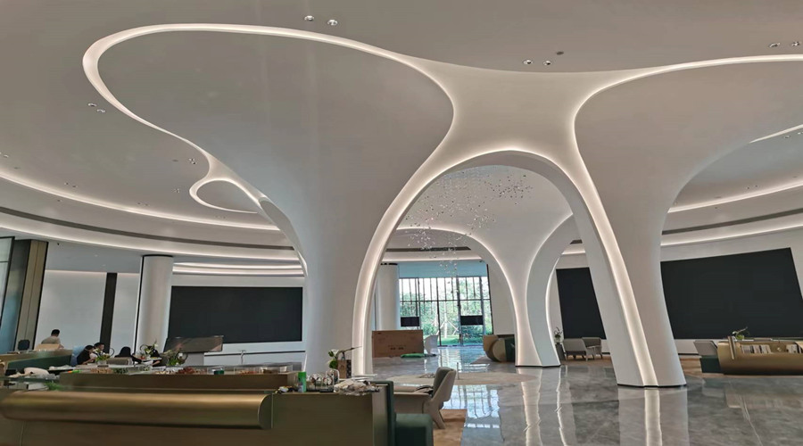 查看詳情GRG(Glass Reinforced Gypsum)材料的出現使得設計師們可以將效果圖完美呈現于現實生活中,無論是墻面還是吊頂,都能輕松